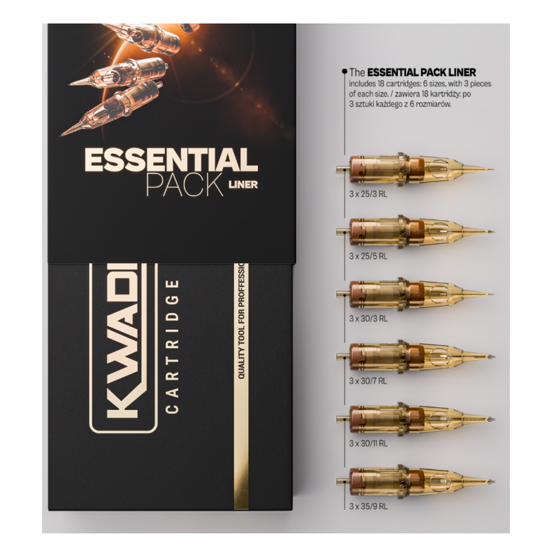 Le pack essentiel de cartouches Kwadron Cartridge System Liner est un ensemble soigneusement sélectionné de cartouches Round Liner, conçu pour les tatoueurs exigeants en matière de précision, de contrôle et de régularité. Des configurations éprouvées pour les détails fins et les contours nets, réunies dans un seul pack complet.