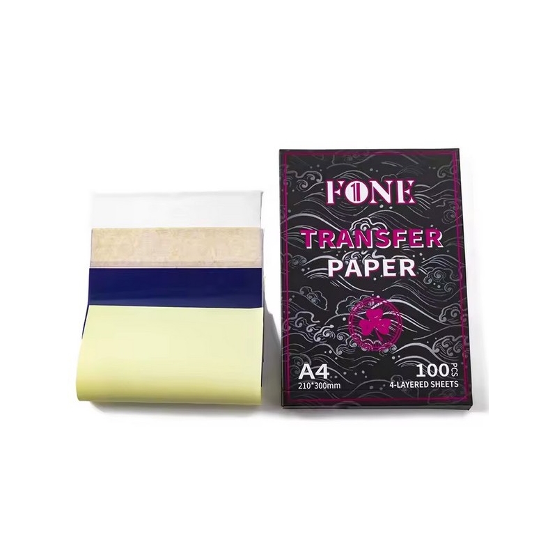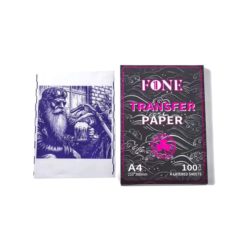 Papier transfert de la marque "FONE" pour des artistes tatoueurs exigeant des feuilles à 4 couches de haute qualité.