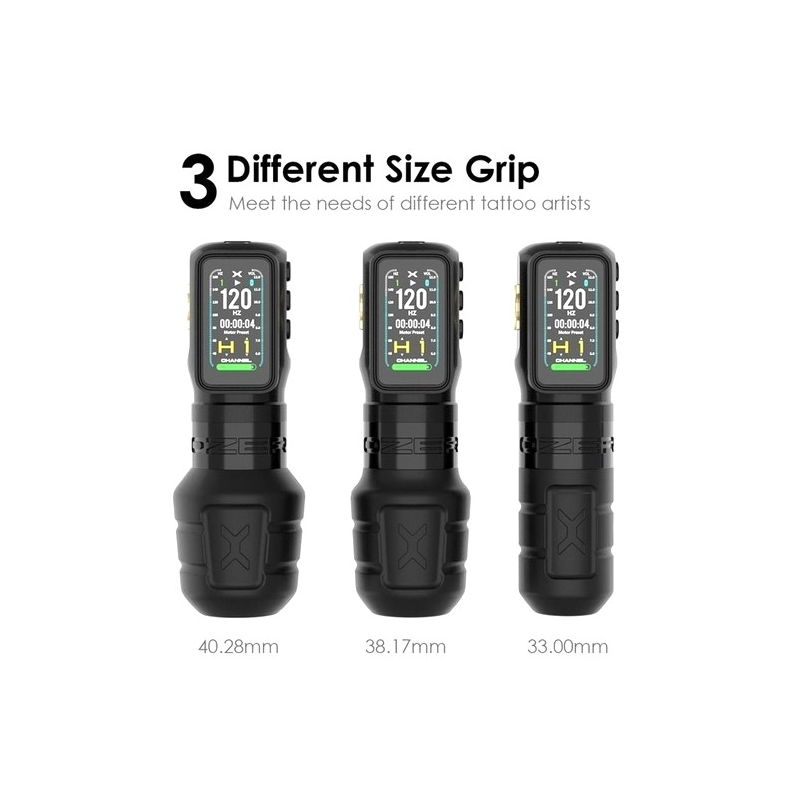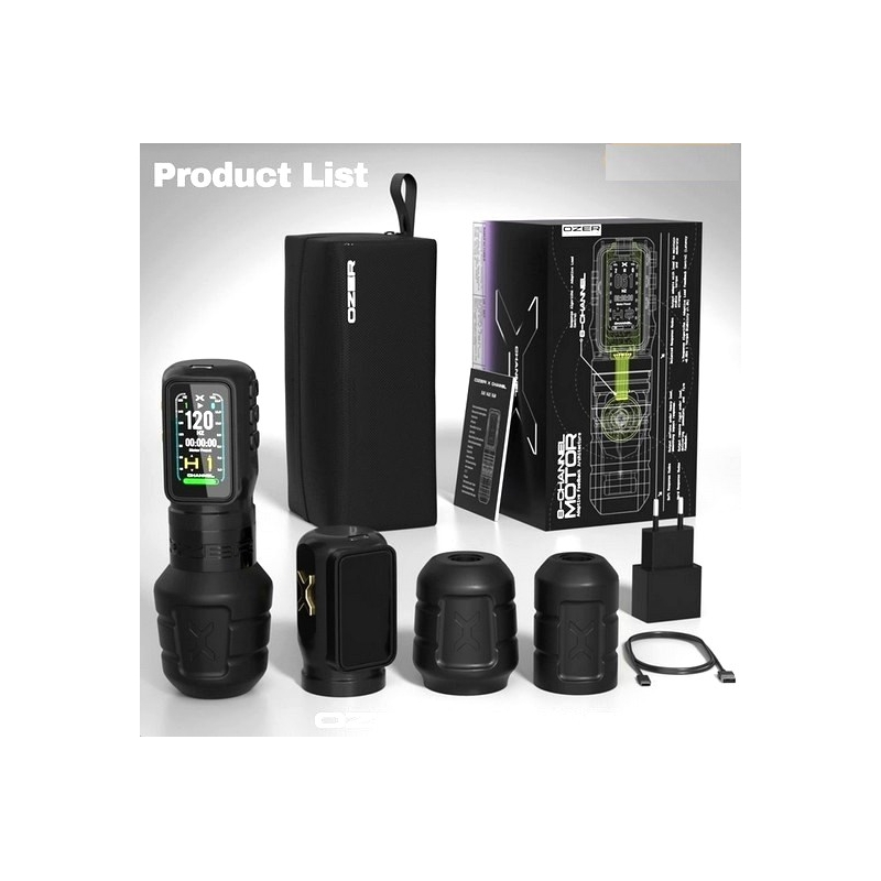 La machine Wireless OZER X-CHANNEL est conçue pour optimiser chaque séance, elle offre une qualité professionnelle exceptionnelle grâce à son moteur brushless à transmission externe auto-développé, sa technologie haute fréquence et son écran IPS haute définition 172x320 PPI qui permet de visualiser instantanément les réglages avec une parfaite clarté. Sa batterie longue durée de 1800 mAh assure une autonomie fiable, soutenue par une deuxième batterie incluse pour ne jamais interrompre votre rythme de travail.