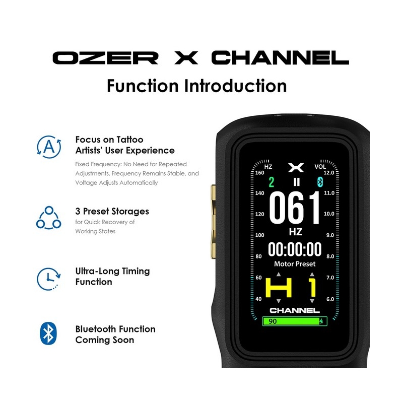 La machine Wireless OZER X-CHANNEL s’impose comme une révolution pour les tatoueurs en quête de puissance, de précision et d’un confort de travail inégalé.