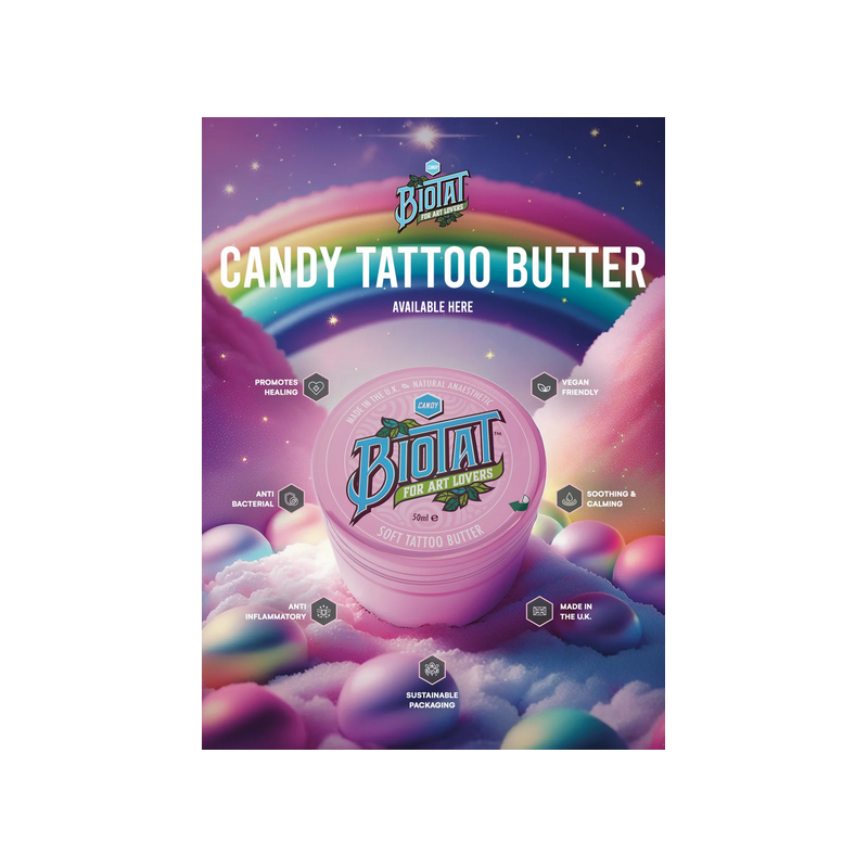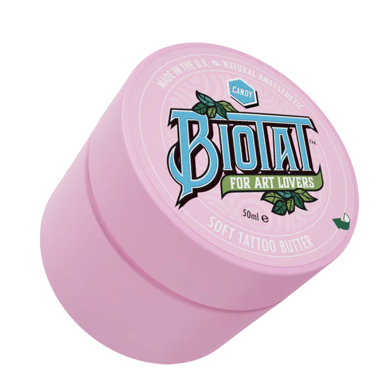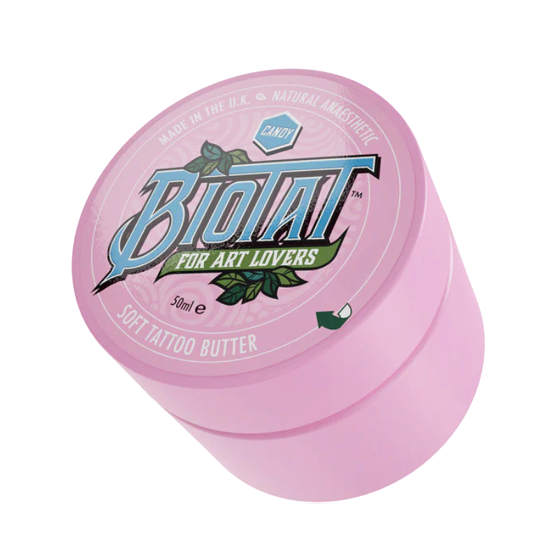 Enrichi en extrait de clou de girofle, ce soin après-tatouage aide à réduire les rougeurs et l’inflammation tout en procurant un effet d'engourdissement naturel pour un confort accru. Ses propriétés antibactériennes, antimicrobiennes et antifongiques préservent la fraîcheur et l’éclat du tatouage tout en évitant les infections. Son parfum sucré de bonbon transforme chaque application en un véritable moment de plaisir sensoriel. Fabriqué au Royaume-Uni avec des ingrédients de haute qualité, Biotat Tattoo Aftercare Butter est le choix parfait pour un soin post-tatouage efficace et respectueux de votre peau.